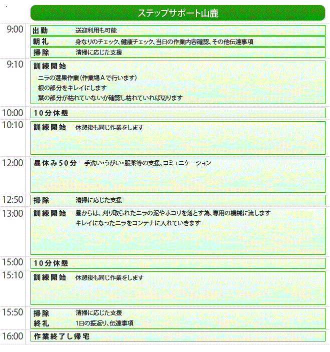 | 作業場所 | ・ステップサポート益城 ・ステップサポート山鹿 |